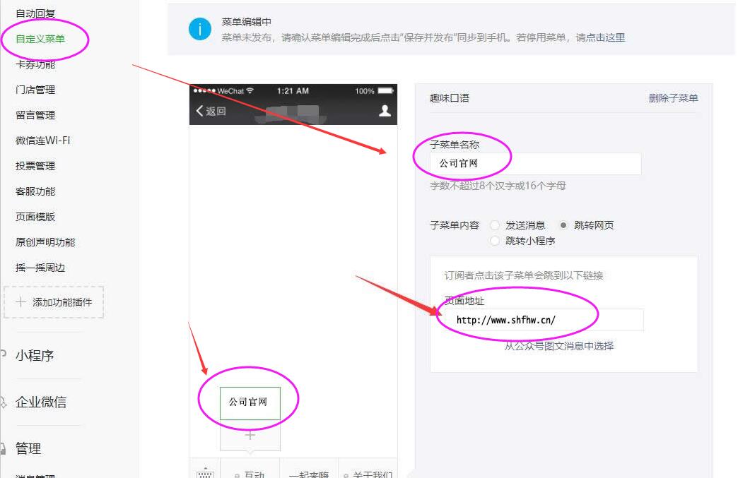 微信公眾號(hào)添加菜單跳轉(zhuǎn)網(wǎng)站鏈接的設(shè)置方法?