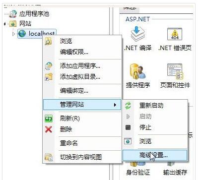 打開IIS管理器,查看網(wǎng)站的高級屬性