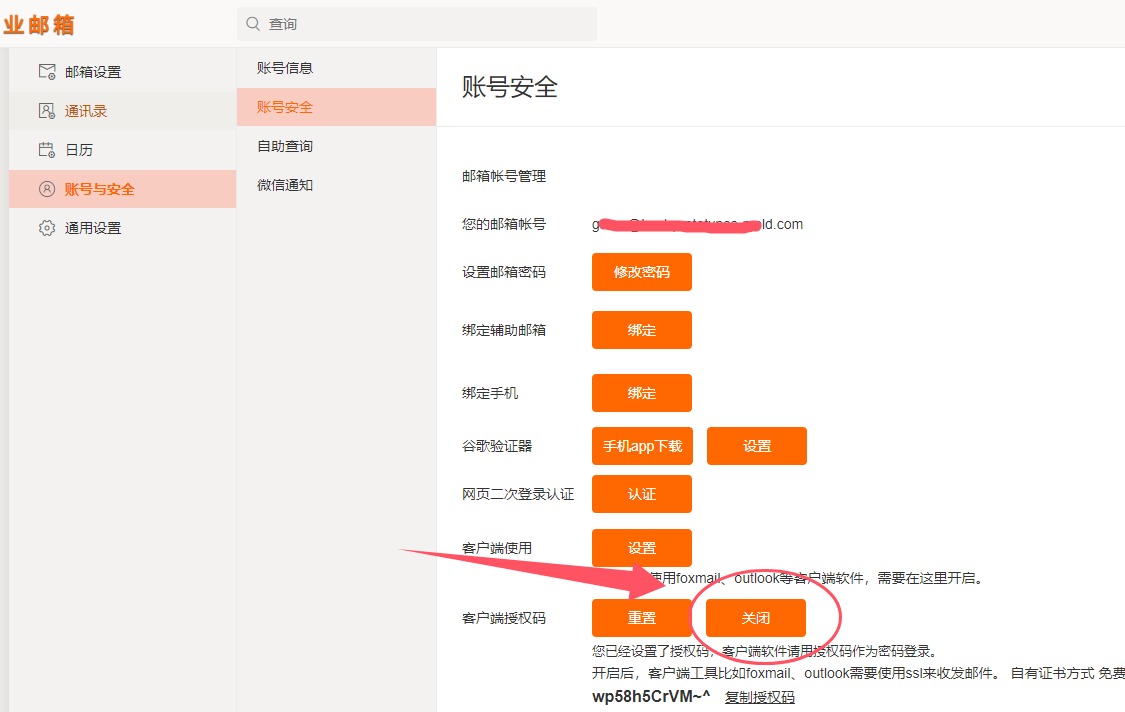 有時(shí)客戶端提示錯(cuò)誤,可能是關(guān)閉了客戶端pop、imap和smap登錄功能,或者開啟了“客戶端授權(quán)碼”,這里關(guān)閉下。