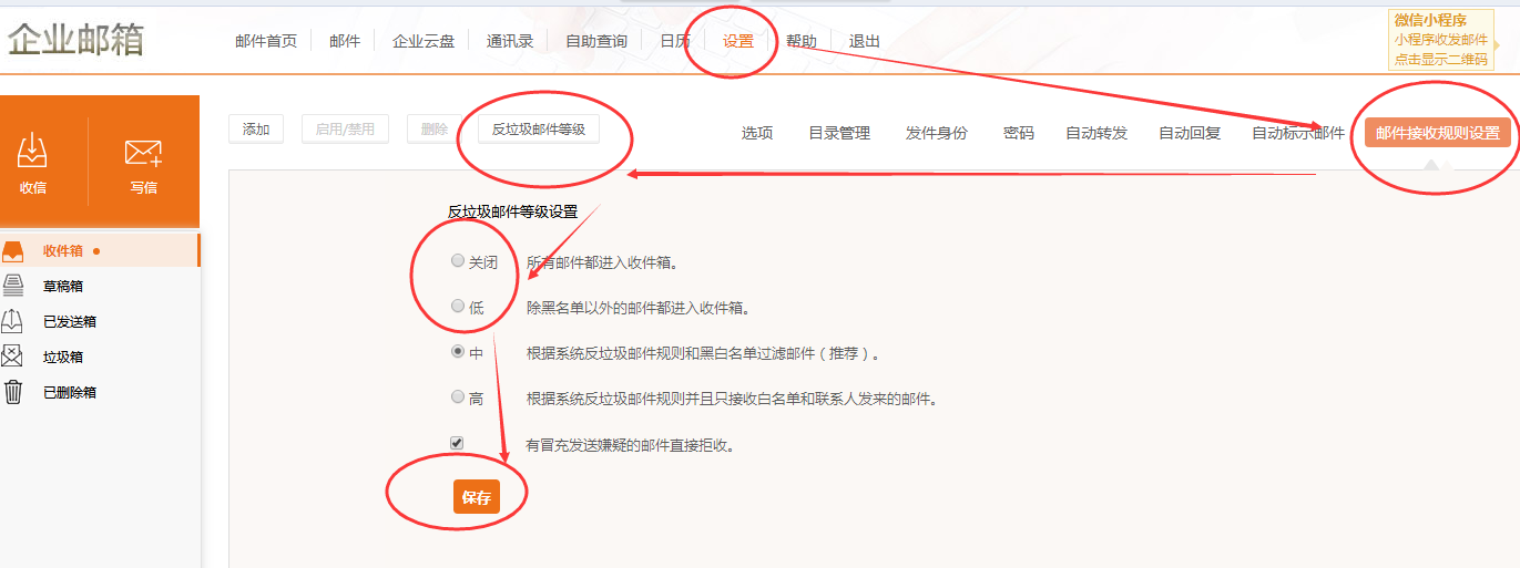 企業(yè)郵箱取消部分新郵件自動(dòng)到垃圾箱中設(shè)置方