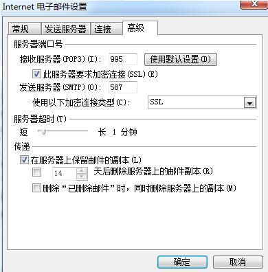 5、點(diǎn)擊高級(jí)選項(xiàng)卡,勾選在服務(wù)器上保留郵件的副本,如果永久保存,去除勾選“天后刪除服務(wù)器上的郵件副本”,點(diǎn)擊確定。