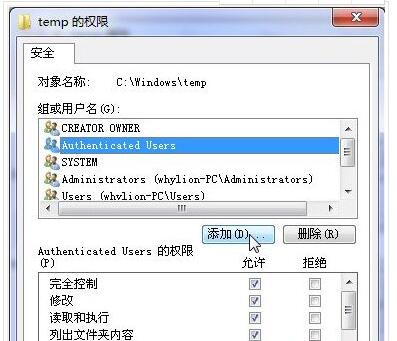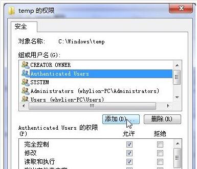 給上面兩個文件夾添加Authenticated Users的完全訪問權(quán)限