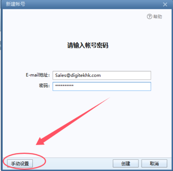 根據(jù)界面提示填寫--創(chuàng)建郵件賬號,填寫"電子郵件地址",例如您的郵局用戶是guest,您公司的域名為yourdomain.com則填寫" guest@yourdomain.com,填寫后如下圖。