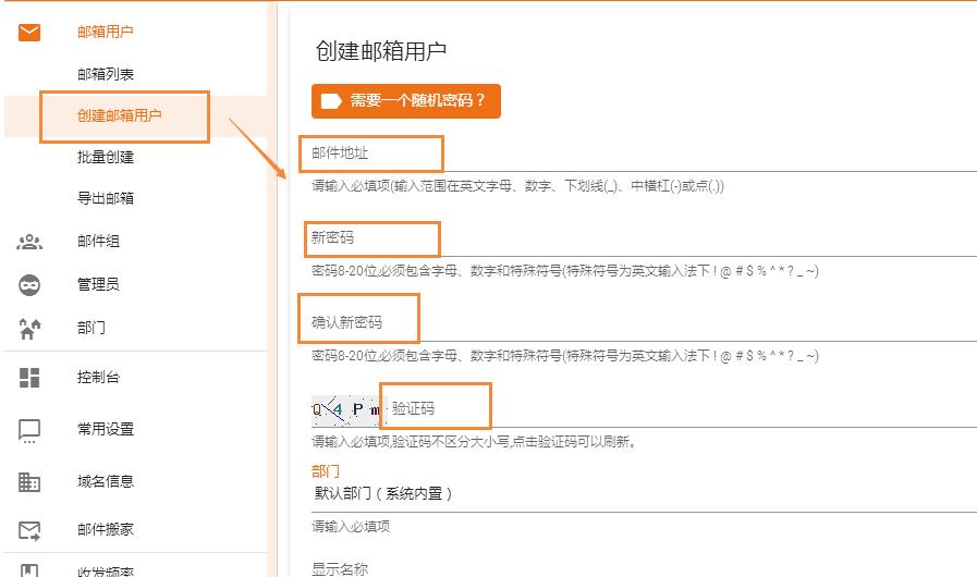 1、在“郵箱用戶”下點(diǎn) “創(chuàng)建郵箱用戶”,添加新郵箱用戶。